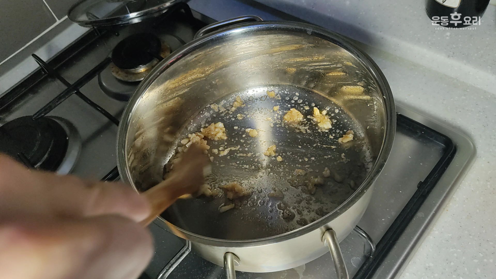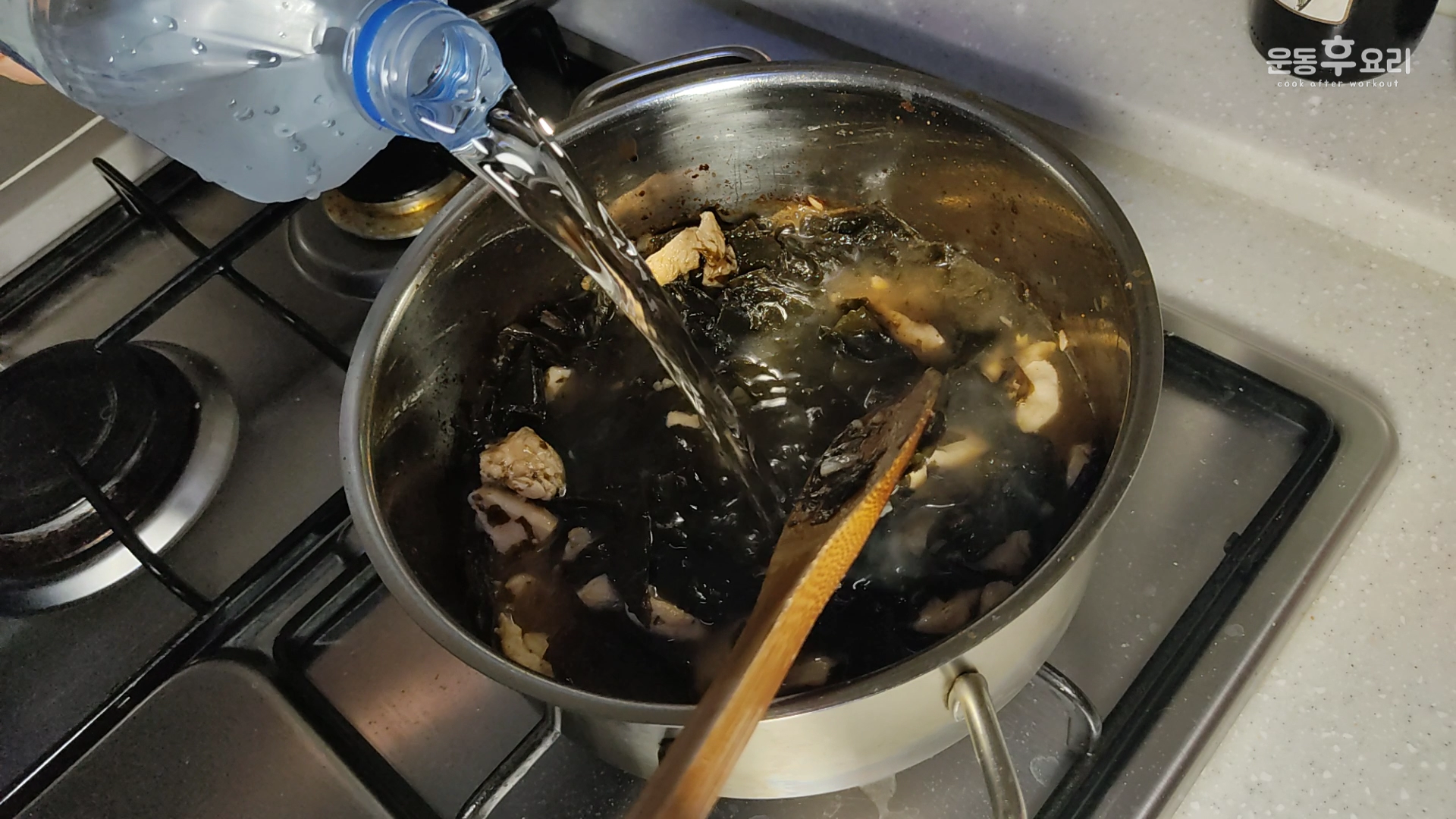 미역의 숨이 죽을 때 까지 볶아주세요.
