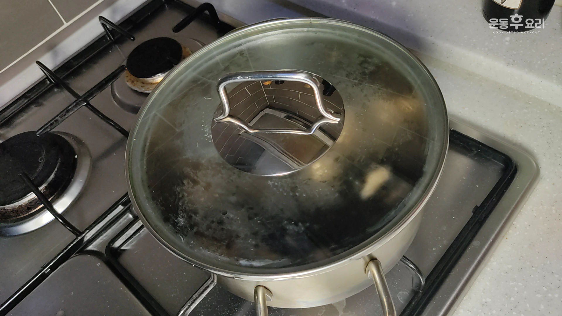 뚜껑을 덮고 중~강불로 10분정도 끓여주세요.