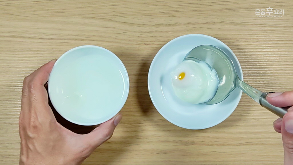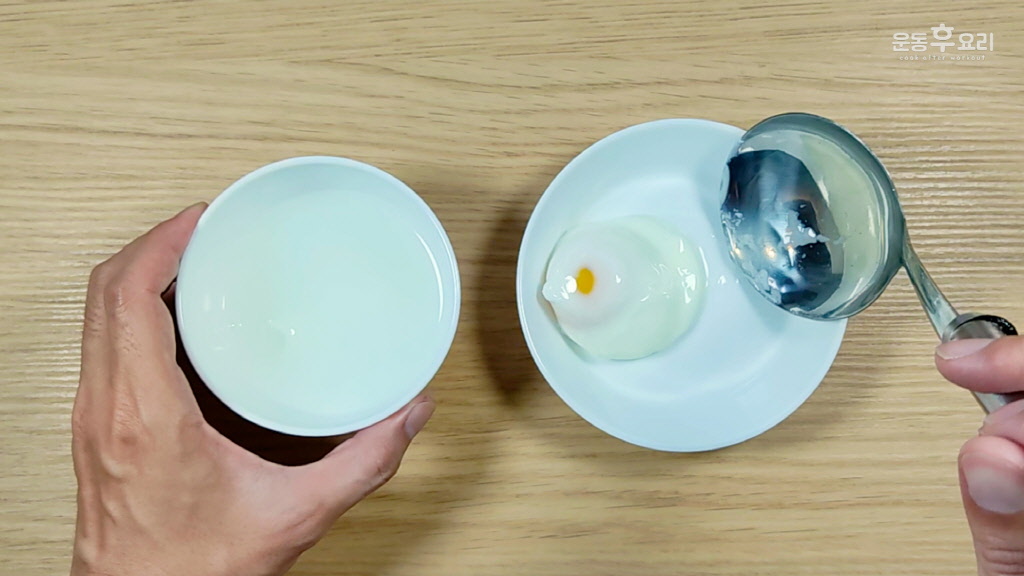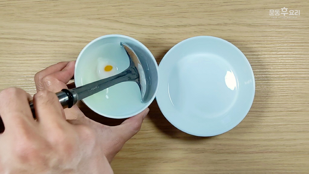 국자나 큰 숟가락을 사용하면 수란의 모양을 흐트러트리지 않고 꺼낼 수 있어요.