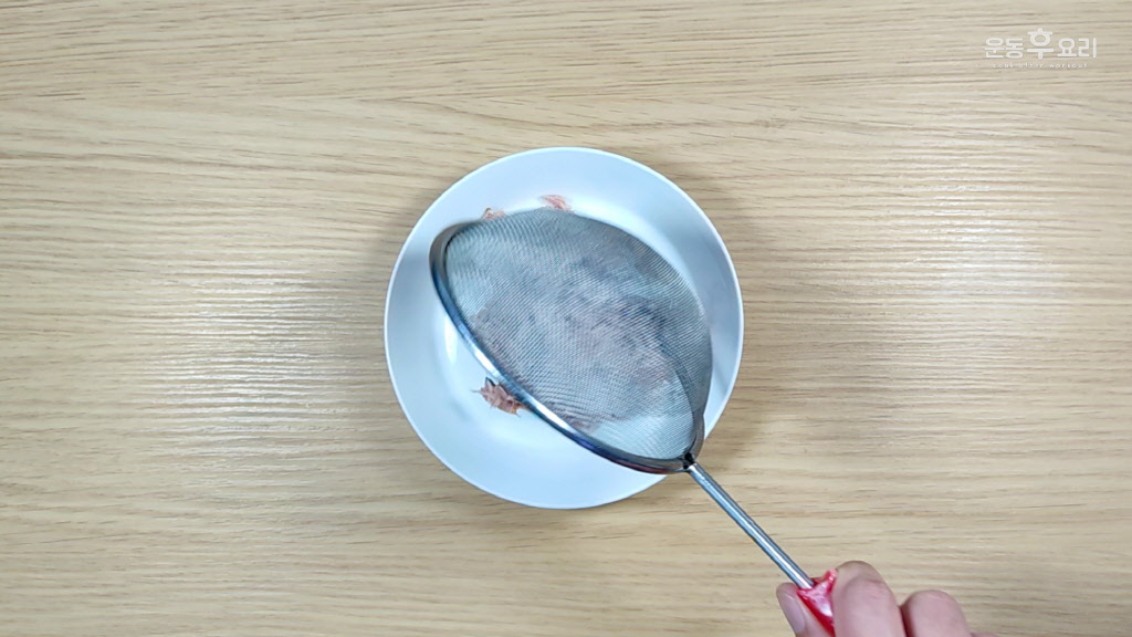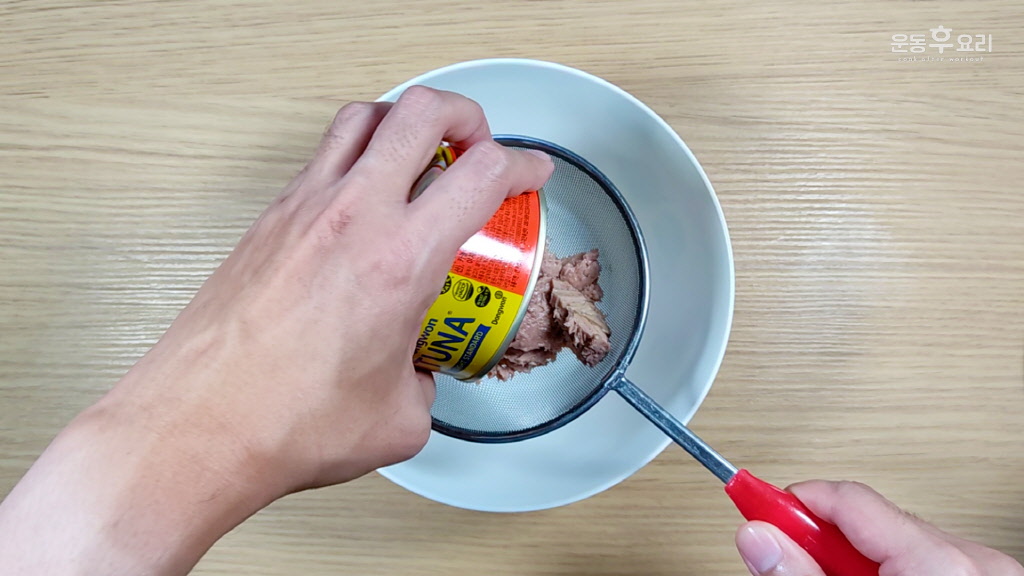 참치를 담을 수 있는 체를 하나 준비해주세요.