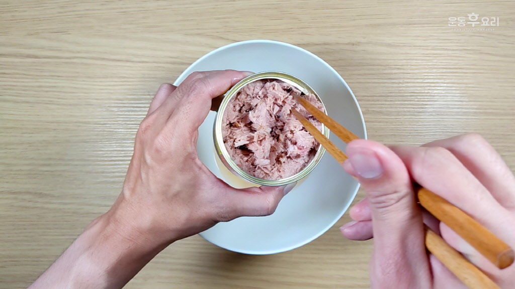 첫 번째 방법보다는 손이 많이 가지만 참치의 기름을 좀 더 확실하게 뺄 수 있는 방법입니다.