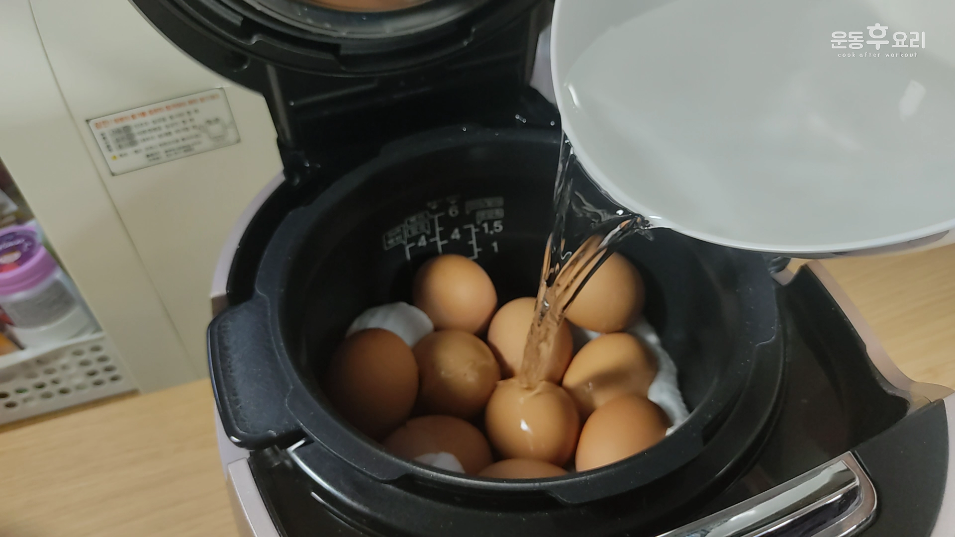 계란이 반정도 잠길 정도로 물을 넣어주시고,