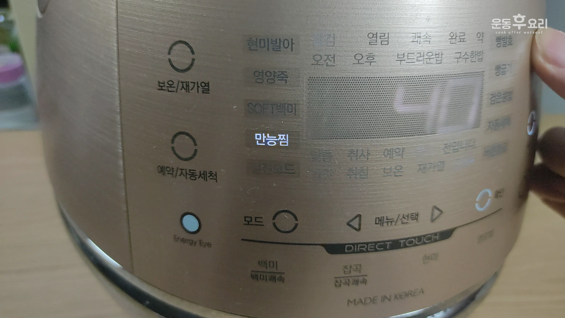 전기밥솥의 뚜껑을 닫고, 만능찜모드를 선택하여